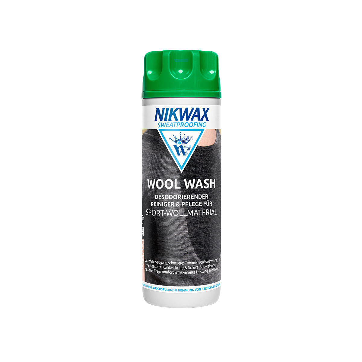 - Desodorierender Reiniger und Weichspüler für alle Sportbekleidung aus Merinowolle und Wolle