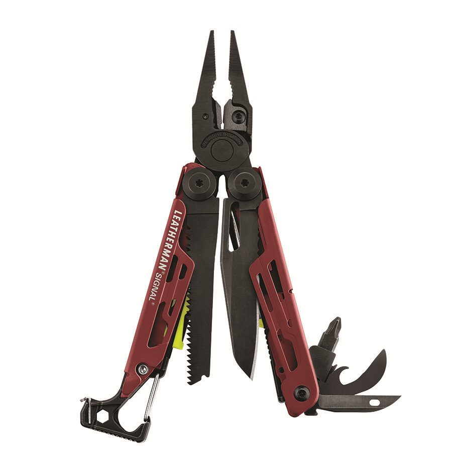 Das Signal ist der perfekte Begleiter für jedes Abenteuer und kombiniert 19 nützliche Werkzeuge in einem kompakten 4,5-Zoll-Format. Mit diesem Multi-Tool, mit seinem Feuerstarter, der 420HC-Kombiklinge und der Signalpfeife, bist Du immer auf das Unerwartete vorbereitet. Befestige Ausrüstung mit dem auswechselbaren Bithalter und veranker Deine Zeltpfähle mit dem eingebauten Hammer. Mach Dich bereit und überschreite Deine Grenzen - mit dem Leatherman Signal. DLC-Beschichtung auf Edelstahl und Schwarz. Cerakote™ auf Coyote Tan, Aqua, Karminrot, Grau und Kobalt. Signal Inklusive Nylon-Etui.